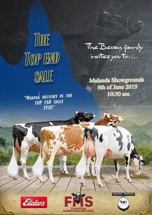 The appropriately named Bevandale Holsteins Top End Sale takes place on Thursday 6 June at the Malanda Showgrounds in Far North Queensland. Featuring 100 Holsteins from this Master Breeder herd (58 milking and dry cows, 26 pregnant heifers, 13 unjoined heifers and 3 working age bulls) many influential families are represented, with cows classified to Excellent and many scored VG including two VG 2-year olds who sell dry and ready to freshen for a second time.