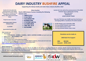 How great is the dairy industry. Support for the Dairy Industry Bushfire Appeal has been astronomical. Holstein Australia is contributing to this great initiative, set up by Jersey Australia, International Dairy Week and the Global Impact Sale, with the donation of 50 genomic ABV(g) tests for the silent auction which will run online throughout IDW.